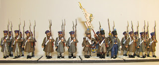 After a little bit more work adding some greenstuffed sashes and sword belts, my collection of Officers and their staff is now ready for painting!